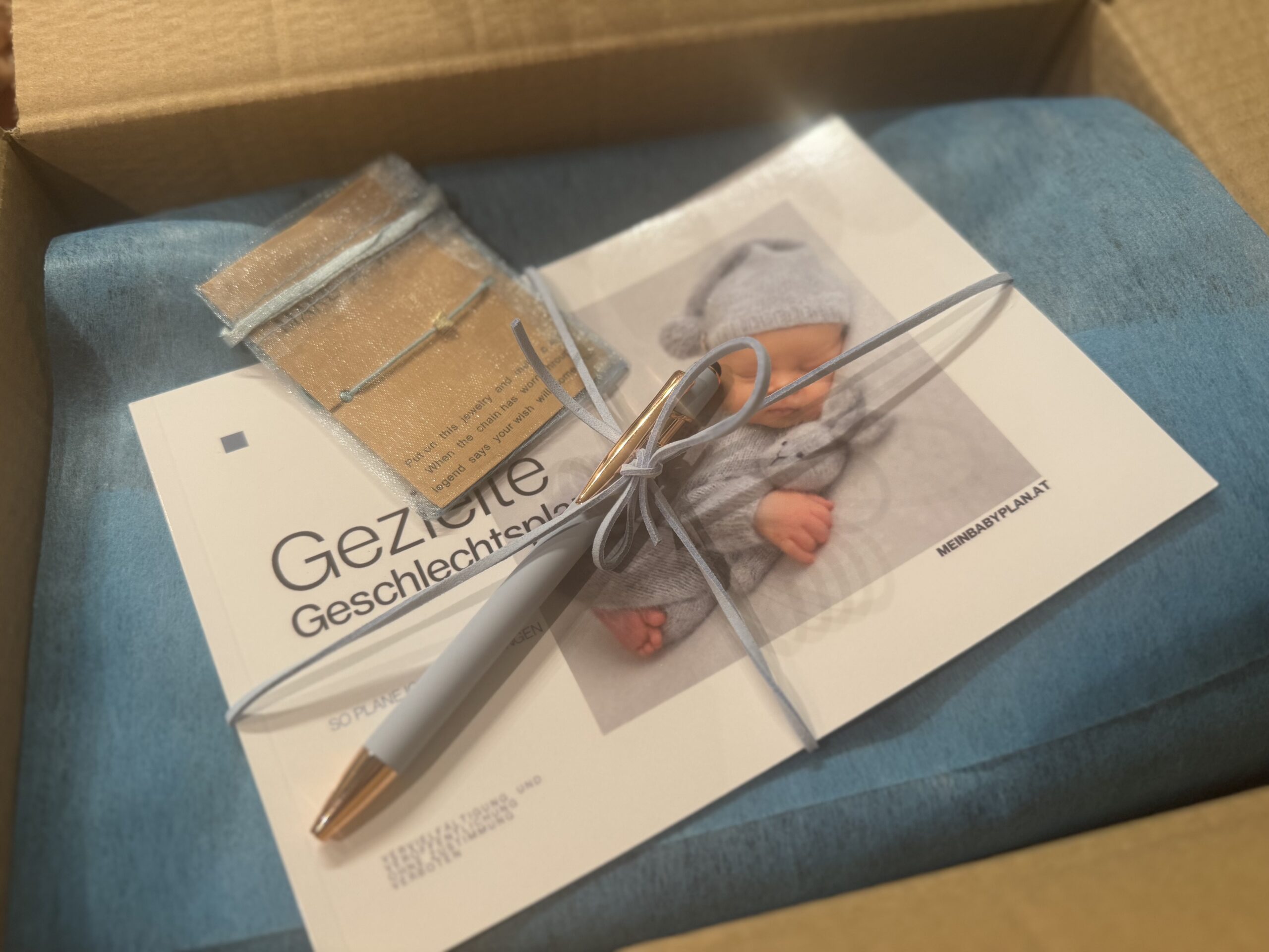 habe die box damals bestellt und hat mir sehr geholfen, hatte alles zusammen und musste mich nicht mehr darüm kümmern alles zusammen zu suchen. find ich toll, beschreibung war auch dabei und ein kleines geschenk von meinbabyplan, süß. bin schon schwanger und in einer woche bekomme ich resultat per blut, ärtzin tendiert auf mädchen, so wie ich geplant habe, mit anleitung der box.vielen dank dafür und für alles!